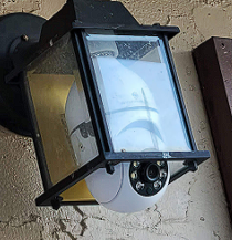 A secret camera hidden in a porch light.